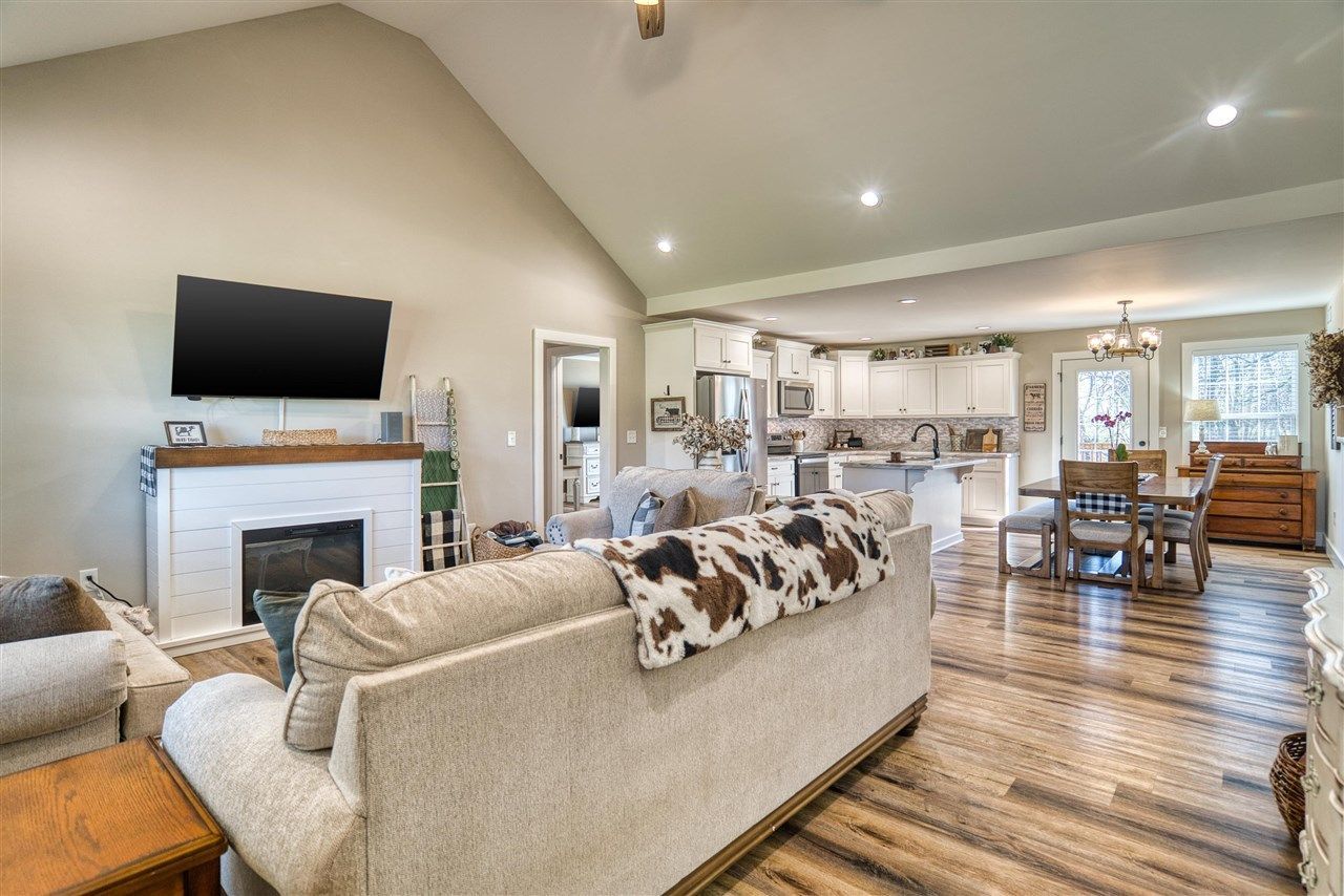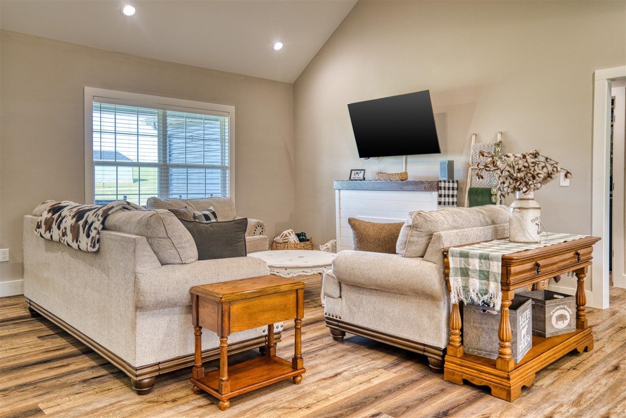 Like-new construction home situated on a 1.5-acre lot in a beautiful country setting in Auburn, KY. This spacious 4-bedroom, 2-bath home offers over 2,000 square feet of living space with an open, inviting layout designed for both everyday living and entertaining. The fourth bedroom or bonus room is located upstairs and features a large walk-in closet, providing flexibility for guests, a home office, or additional living space. The main level showcases LVP flooring throughout, along with tray and vaulted ceilings that add character and dimension. The large open kitchen is a standout feature, with plenty of cabinetry, and solid surface countertops, it is perfect for gathering and hosting. The master suite offers a relaxing retreat with separate vanities, a large tile shower, soaking tub, walk-in closet and a water closet for additional privacy. Enjoy outdoor living with a covered front porch and a back deck overlooking a spacious backyard with mature trees. The setting is ideal for relaxing evenings, taking in peaceful country sounds and scenic views. The large yard provides ample space for activities, making it perfect for children, pets, and entertaining family and guests. Conveniently located just 15 minutes from Bowling Green, 15 minutes from Russellville, and 20 minutes from Franklin, this home offers the perfect blend of quiet country living with easy access to nearby amenities.